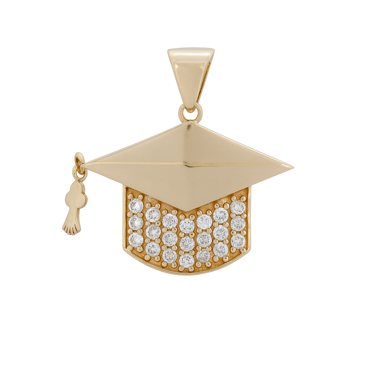 This elegant graduation hat pendant from Fine Gold Jewelry is crafted in 14k solid yellow gold and accented with clear zircon stones. A thoughtful keepsake for graduates, this piece blends symbolism with timeless style. At approx. 1.73 grams, it's lightweight and wearable every day.
