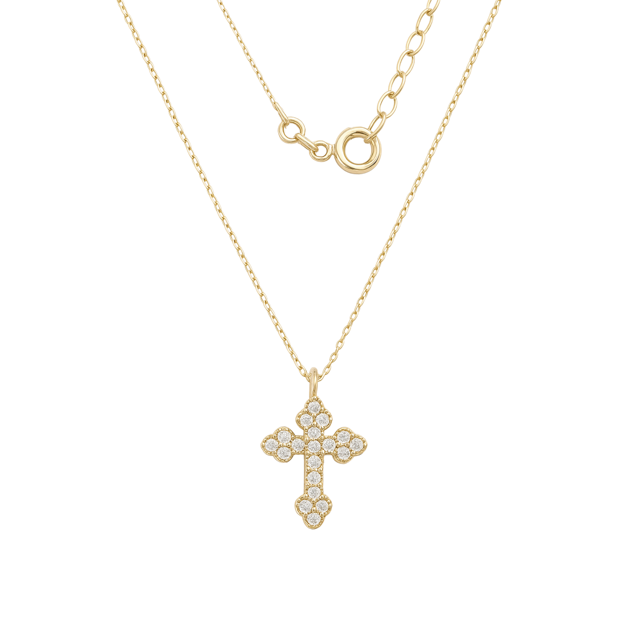 This elegant cross pendant necklace by Fine Gold Jewelry is crafted in 14k solid yellow gold and features a sleek cross silhouette adorned with a sparkling clear zircon. A symbol of faith and grace, it’s a timeless piece perfect for everyday wear or meaningful gifting. The necklace includes a 45 cm chain and weighs approx. 1.72 grams total (1.01g gold).